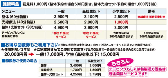 1部位(1箇所)のテーピングもしくは当院特製漢方湿布をサービス。★通常300円分 ![]() ![]()